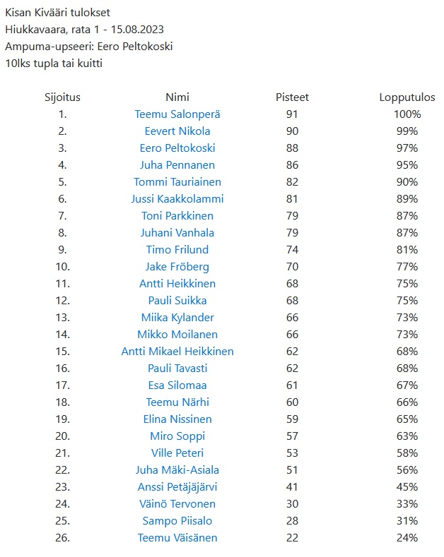 Pam Cup 2023 lopputulos PienoispistooliPistooliKivääri 6.2.20239.1.202316.1.2023 21.3.202324.1.202331.1.2023 3.4.202321.2.202311.2.2023 15.5.20236.3.202313.2.2023 4.7.202318.4.202313.3.2023 1.8.20236.6.202328.3.2023 29.8.202315.6.202311.4.2023 3.10.202318.9.202325.4.2023 13.11.202316.10.20234.5.2023 31.10.202330.5.2023 28.11.202320.6.2023 15.8.2023 24.8.2023 11.9.2023 26.9.2023 24.10.2023 6.11.2023 21.11.2023